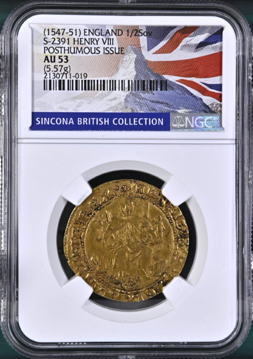 グレートブリテン 1547-51年 エドワード6世 ヘンリー8世名義 1/2ソブリン金貨 NGC-AU53