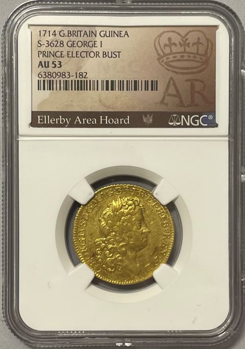 【レア度1-R1】グレートブリテン 1714年 ジョージ1世 1ギニー金貨 NGC-AU53 Ellerby Area Hoard Collection