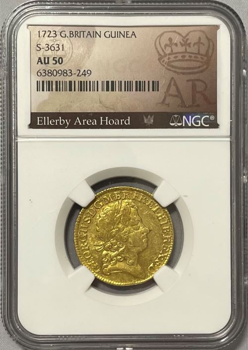 【レア度2-R2】グレートブリテン 1723年 ジョージ1世 1ギニー金貨 NGC-AU50 Ellerby Area Hoard Collection