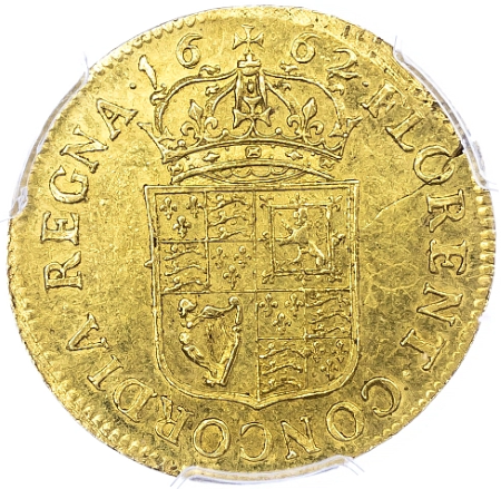 この20シリング金貨は1662年の3月から4月にかけて製造されました。