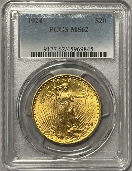 【資産防衛】アンティークコイン アメリカ 1924年 20ドル金貨 ダブルイーグル セントゴーデンズ PCGS-MS62