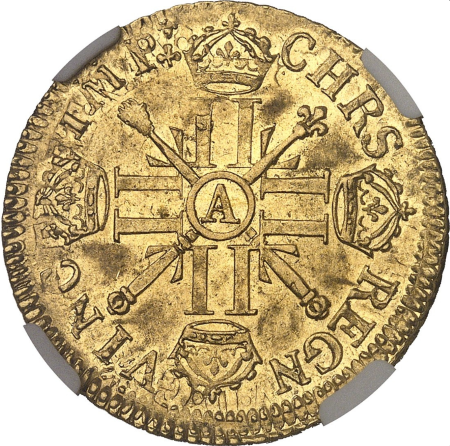 「アンティークコイン金貨専門のゴールドコイン」で取り扱う商品「【動画あり】フランス 1701-A年 ルイ14世 2ルイドール金貨 NGC-AU58」の紹介・購入ページ