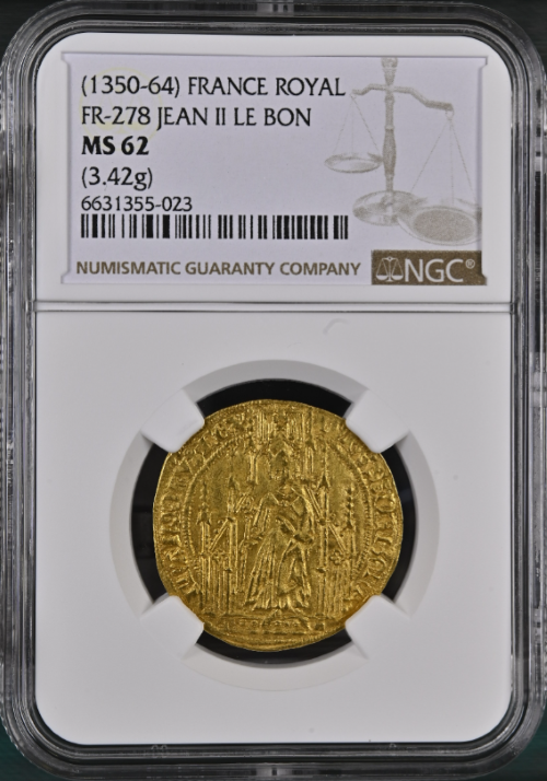 フランス 1350-64年 ジャン2世 1ロイヤル金貨 NGC-MS62