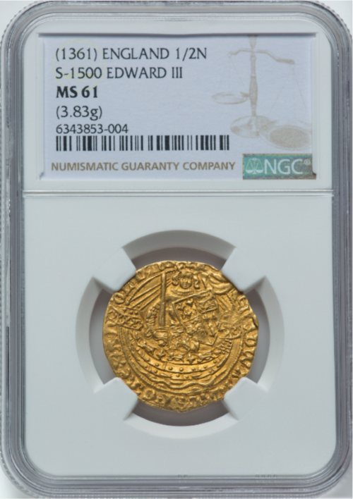 アンティークコイン グレートブリテン 1361年 エドワード3世 1/2ノーブル金貨 NGC-MS61