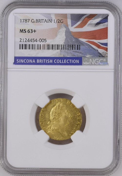 アンティークコイン グレートブリテン 1787年 ジョージ3世 1/2ギニー金貨 NGC-MS63+
