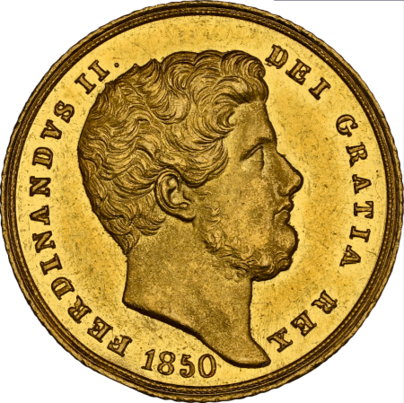 【レア度2-R2】イタリア 1850年 フェルディナンド2世 6ドゥカティ金貨 NGC-MS61