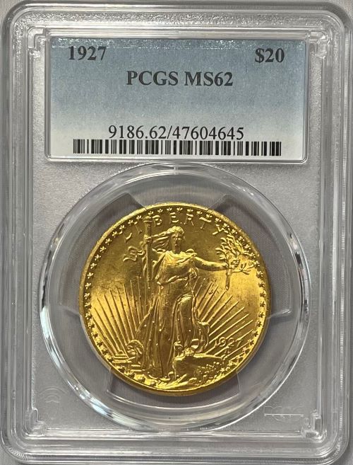 【資産防衛】アンティークコイン アメリカ 1927年 20ドル金貨 ダブルイーグル セントゴーデンズ PCGS-MS62