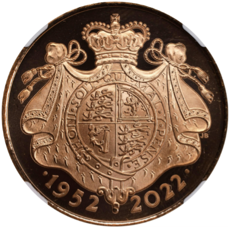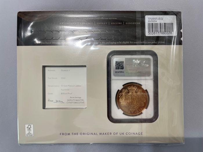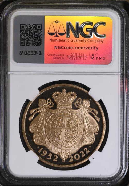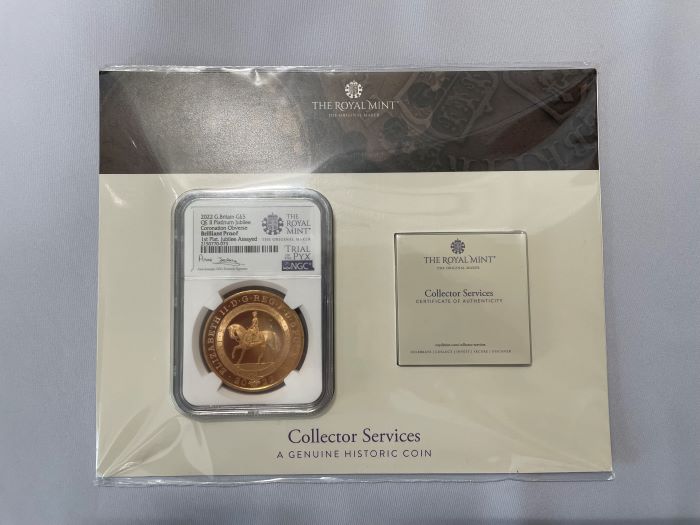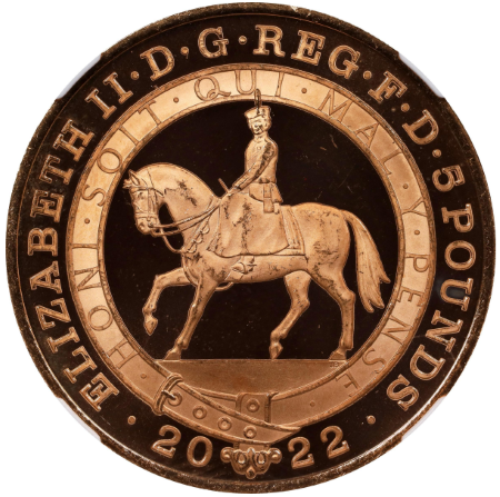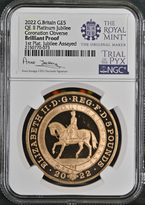 「アンティークコイン金貨専門のゴールドコイン」で取り扱う商品「【トライアル・ピクス】NGC鑑定 グレートブリテン 2022年 プラチナジュビリー 馬上のエリザベス2世 5ポンド 5ソブリン ブリリアントプルーフ金貨」の紹介・購入ページ