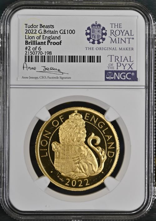 「アンティークコイン金貨専門のゴールドコイン」で取り扱う商品「【トライアル・ピクス】NGC鑑定 グレートブリテン テューダービースト イングランドのライオン 2022年 1オンス 100ポンド Brilliant Proof金貨 #2of6 2150770-198」の紹介・購入ページ