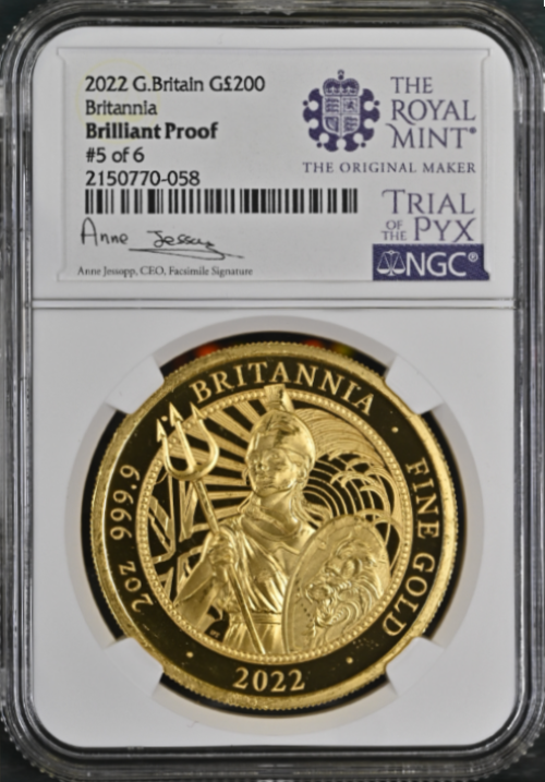 「アンティークコイン金貨専門のゴールドコイン」で取り扱う商品「【トライアル・ピクス】NGC鑑定 グレートブリテン 2022年 エリザベス2世 純金2オンス 200ポンドプルーフ ブリタニア金貨 #5 of 6」の紹介・購入ページ