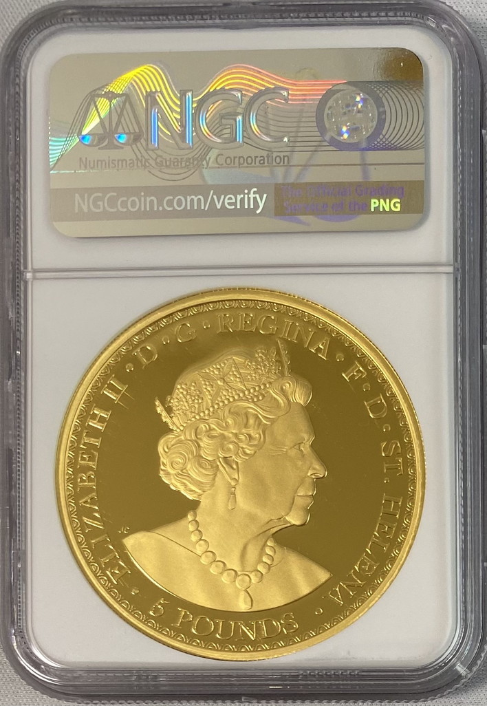 「アンティークコイン金貨専門のゴールドコイン」で取り扱う商品「【動画あり】2021年グレートブリテン領セントヘレナ-エリザベス2世ウナとライオン5ポンドプルーフ金貨NGC-PF70UCAMファーストデイオブイシュー箱付き」の紹介・購入ページ