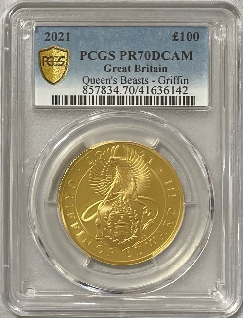 【動画あり】グレートブリテン-クイーンズビースト-エドワード3世のグリフィン2021年 100ポンド金貨 PCGS社-PR70DCAM