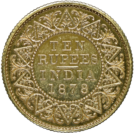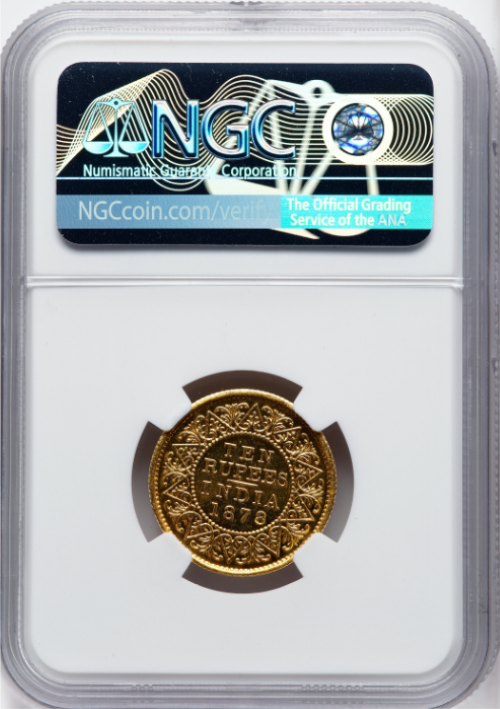 「アンティークコイン金貨専門のゴールドコイン」で取り扱う商品「【動画あり】【Sincona British Collection】英領インド 1878(B)年 ヴィクトリア女王 10ルピー プルーフ金貨 リストライク NGC-PF65★」の紹介・購入ページ