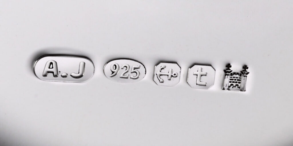 ホールマークの刻印プロセスにはいくつかの異なるマークが含まれており、これらは誰がホールマークの刻印を依頼したか、どこで刻印されたか、どの貴金属が使用されているか、そして製品の純度を特定するのに役立ちます。