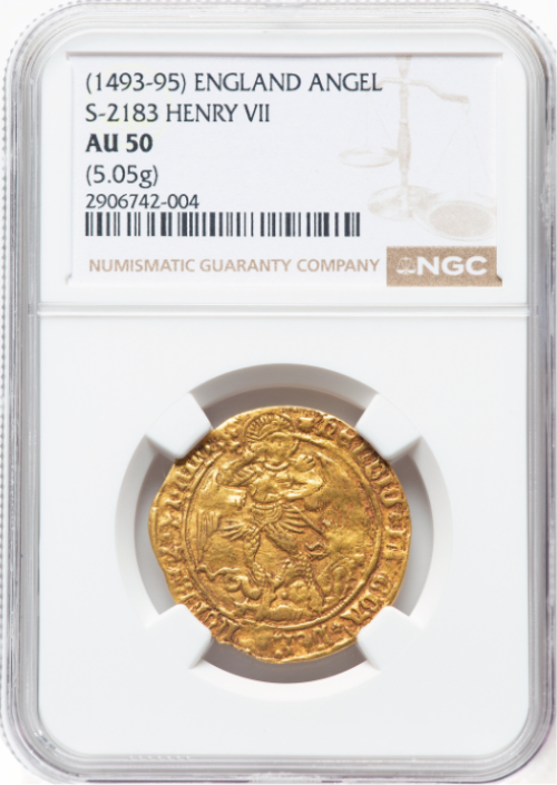 「アンティークコイン金貨専門のゴールドコイン」で取り扱う商品「【動画あり】アンティークコイン グレートブリテン 1493-95年 ヘンリー7世 エンジェル金貨 NGC-AU50」の紹介・購入ページ