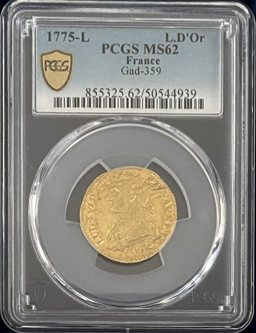 「アンティークコイン金貨専門のゴールドコイン」で取り扱う商品「【動画あり】【レア度2-R2】フランス 1775-L年 ルイ16世 1ルイドール金貨 PCGS-MS62」の紹介・購入ページ