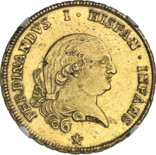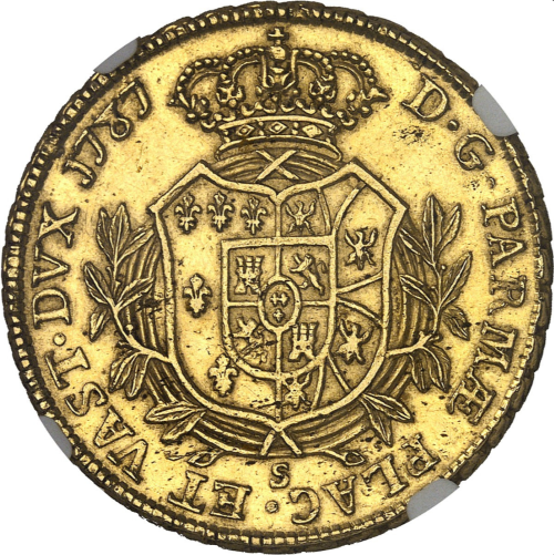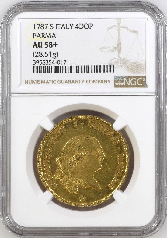 「アンティークコイン金貨専門のゴールドコイン」で取り扱う商品「【動画あり】【レア度2-R2】アンティークコイン イタリア パルマ 1787S年 フェルディナンド1世 4ドッピア金貨 NGC-AU58+」の紹介・購入ページ