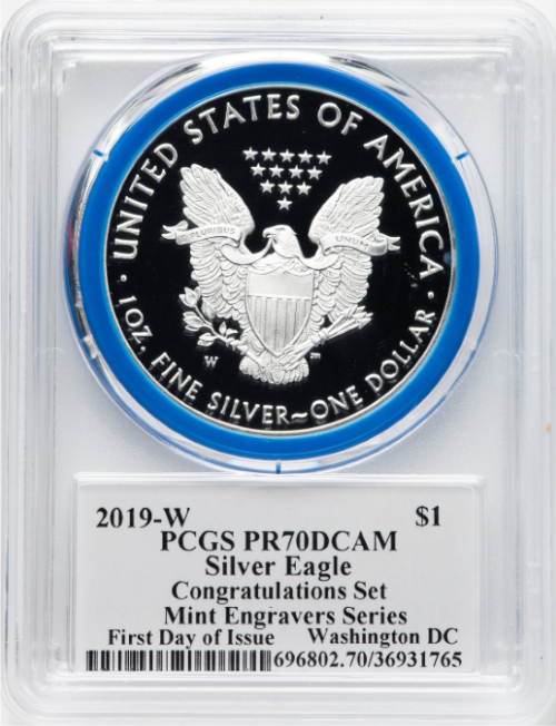 「アンティークコイン金貨専門のゴールドコイン」で取り扱う商品「【ジョン・マーカンティ サイン入り】ファースト・デイ・オブ・イシュー アメリカ 1ドル シルバーイーグル銀貨 コングラチュレーション・セット 2019-W年 ワシントンDC PCGS PR70-DCAM」の紹介・購入ページ
