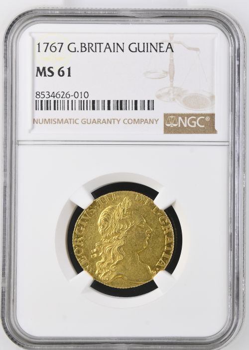 「アンティークコイン金貨専門のゴールドコイン」で取り扱う商品「【レア度3-R3】グレートブリテン 1767年 ジョージ3世 1ギニー金貨 NGC-MS61」の紹介・購入ページ