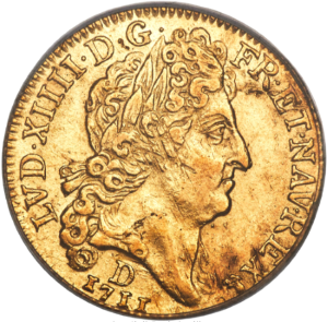 「アンティークコイン金貨専門のゴールドコイン」で取り扱う商品「【レア度2-R2】フランス 1711-D年 ルイ14世 1ルイドール金貨 PCGS-AU55」の紹介・購入ページ