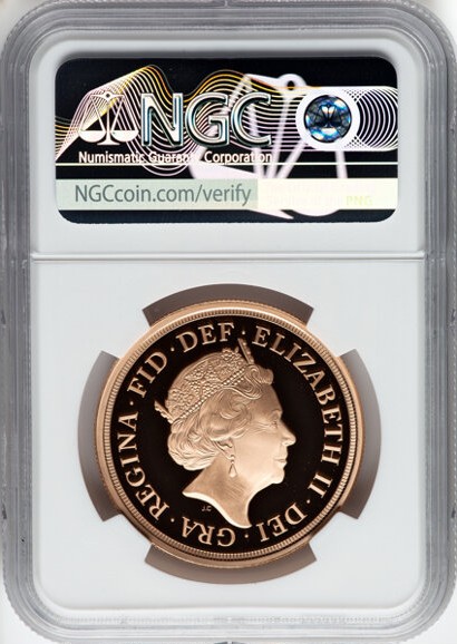 【One of First 100 Struck】グレートブリテン 2022年 エリザベス2世 在位70周年記念 プラチナ・ジュビリー 5ソブリン プルーフ金貨 NGC-PF70 UCAM