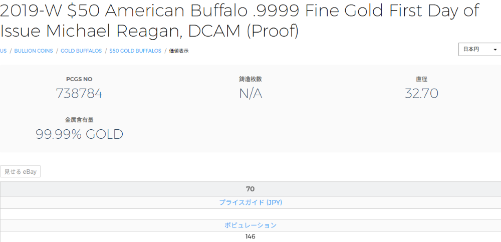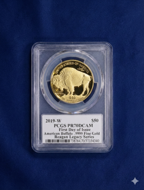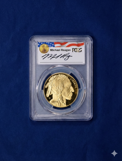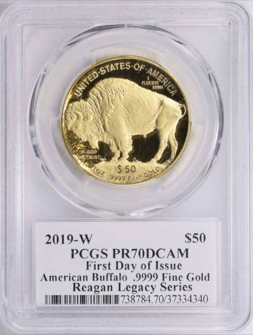 「アンティークコイン金貨専門のゴールドコイン」で取り扱う商品「【First Day of Issue】アメリカ 2019-W年 50ドル バッファロー 1オンス 純金地金金貨 PCGS-PR70 DCAM Michael Reagan サイン入り」の紹介・購入ページ