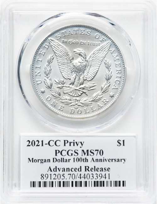 「アンティークコイン金貨専門のゴールドコイン」で取り扱う商品「【エミリー・S・ダムストラ サイン入り】アメリカ 2021年 「CC」プリヴィ・マーク付 モルガン・ダラー 100周年記念銀貨 PCGS-MS70 アドバンスド・リリース 44033941」の紹介・購入ページ