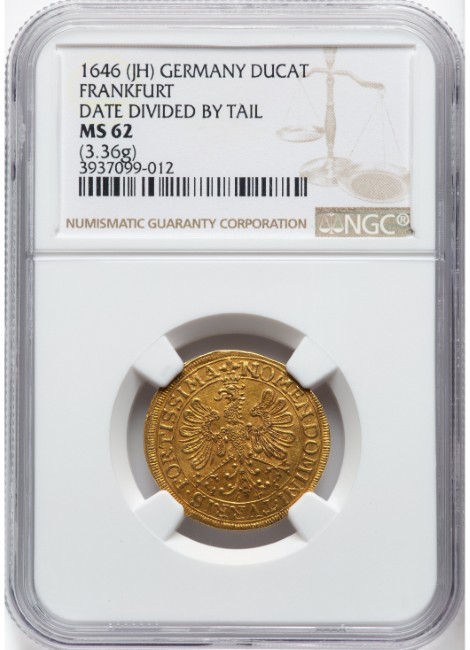 アンティークコイン ドイツ 自由都市フランクフルト 1646-JH年 1ダカット金貨 NGC-MS62