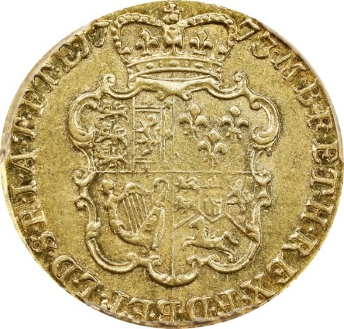 1773年銘のギニー金貨は、チャールズ2世時代の1663年に導入された伝統的な金貨鋳造基準に従っている。