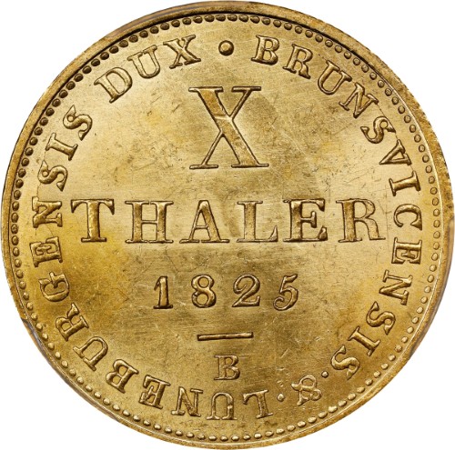 1825年B銘のハノーファー10ターラー金貨は、今後もドイツ・貨幣学の王道を行く銘柄として、その価値を不変のものとし続けるでしょう。
