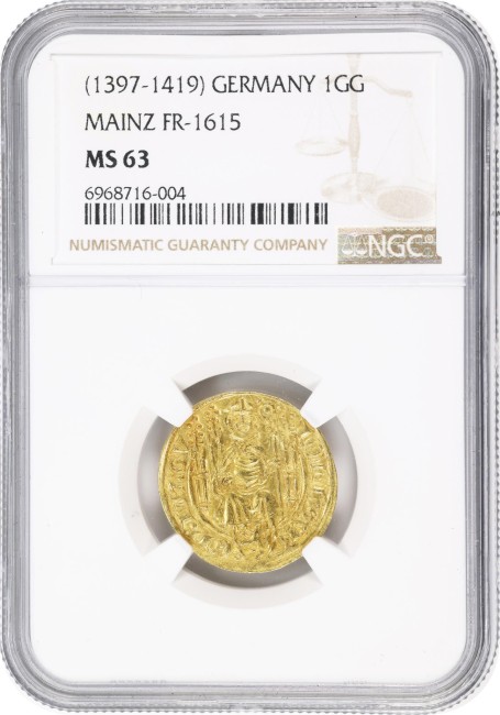 アンティークコイン 神聖ローマ帝国 1397-1419年 マインツ大司教区ヨハン2世・フォン・ナッサウ グルデン金貨 NGC-MS63