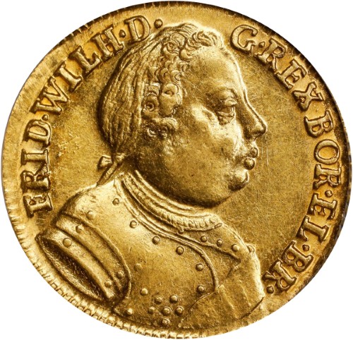 ベルリン造幣局長エルンスト・ゲオルク・ノイバウアーの手によって製造されたこの金貨は、当時の最高水準の造幣技術を今に伝えており、PCGS AU-58という優れた保存状態は、300年近い歳月を経てもなお、その「力強いディテール」と「魅力的な輝き」を失っていません。