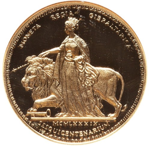 それから150年を経た1989年、イギリスの海外領土であるジブラルタルは、この伝説的な意匠を現代に蘇らせるべく、ポブジョイ・ミント(Pobjoy Mint)を通じて記念金貨シリーズを発行した。