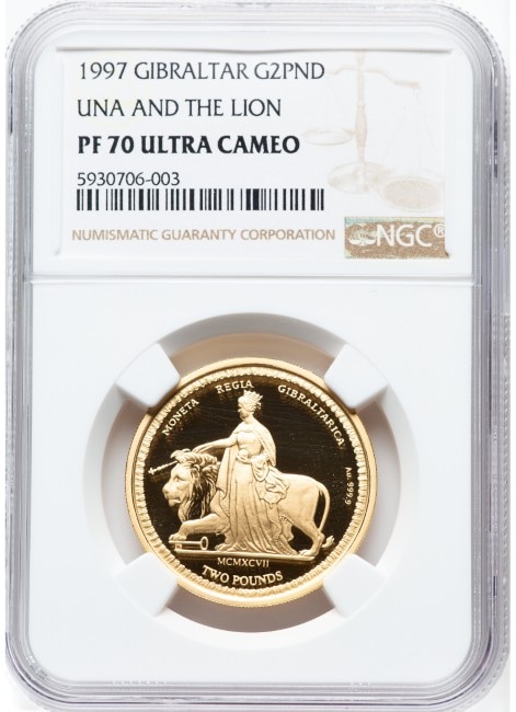 イギリス領ジブラルタル 1997年 ウナとライオン 2ポンド(2ソブリン)金貨 NGC-PF70 UCAM