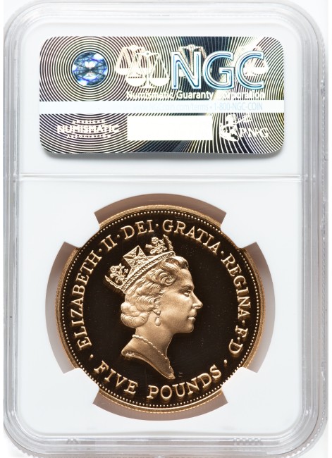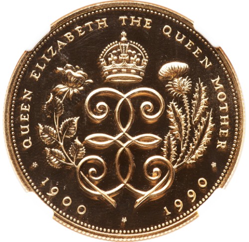 グレートブリテン 1990年 エリザベス2世 エリザベス王太后生誕90周年記念 5ポンド金貨 NGC-PF70 UCAM