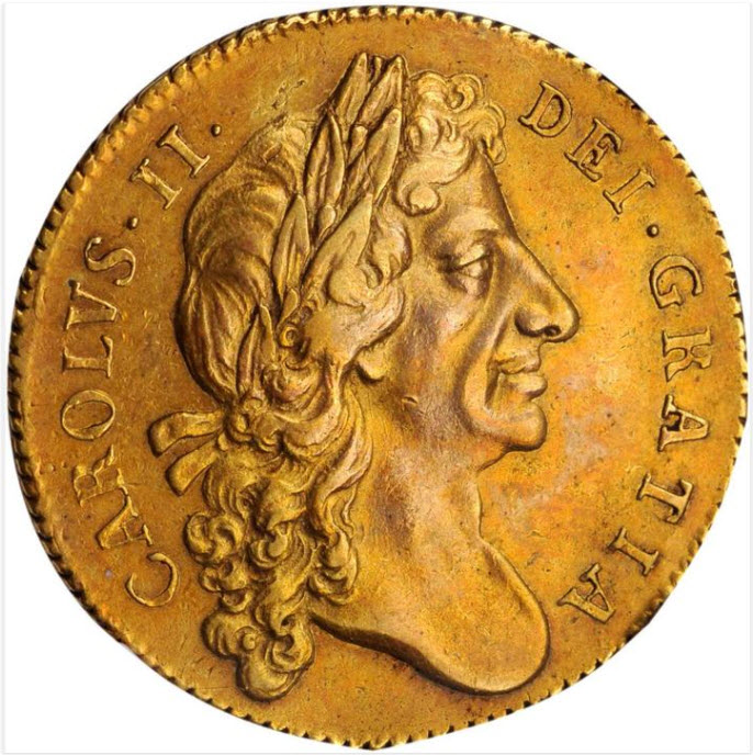 「アンティークコイン金貨専門のゴールドコイン」で取り扱う商品「【動画あり】【レア度2-R2】グレートブリテン1677年チャールズ2世2ギニー金貨NGC-AU53」の紹介・購入ページ