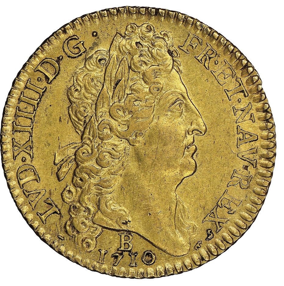 「アンティークコイン金貨専門のゴールドコイン」で取り扱う商品「【動画あり】【レア度2-R2】フランス 1710-B年 ルイ14世 2ルイドール金貨 ソレイユ NGC-AU58」の紹介・購入ページ