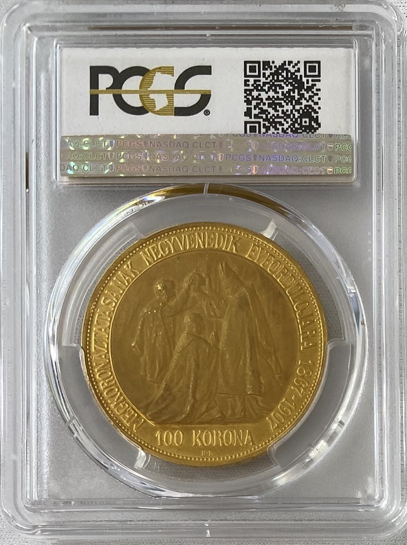 ハンガリー 1907年 フランツ・ヨーゼフ1世 戴冠式記念 100コロナ金貨 PCGS MS63
