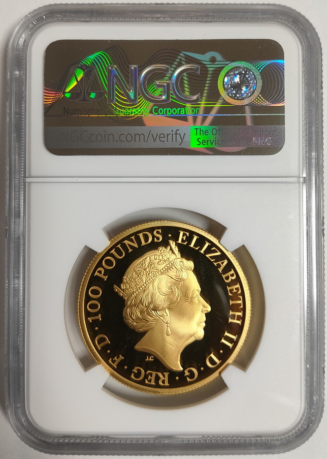 【動画あり】グレートブリテン2021年クイーンズビースト リッチモンドのホワイトグレーハウンド 100ポンド金貨NGC-PF70UCAM