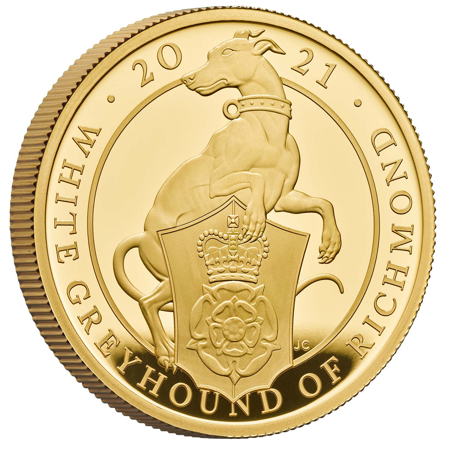 「アンティークコイン金貨専門のゴールドコイン」で取り扱う商品「【動画あり】グレートブリテン2021年クイーンズビースト リッチモンドのホワイトグレーハウンド 100ポンド金貨NGC-PF70UCAM」の紹介・購入ページ